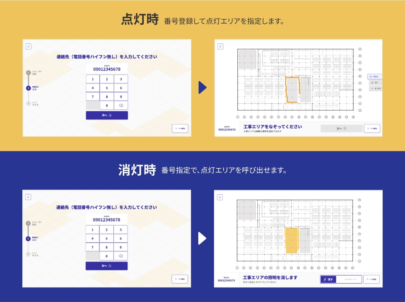 タッチパネル型のエリア指定スイッチを導入することで、スイッチの場所を意識することなく点灯操作が可能となり、作業員の負担が軽減されました。また、必要な箇所だけを効率的に点灯・消灯でき、無駄な電力消費を抑えられます。