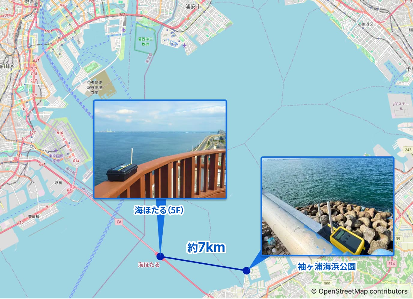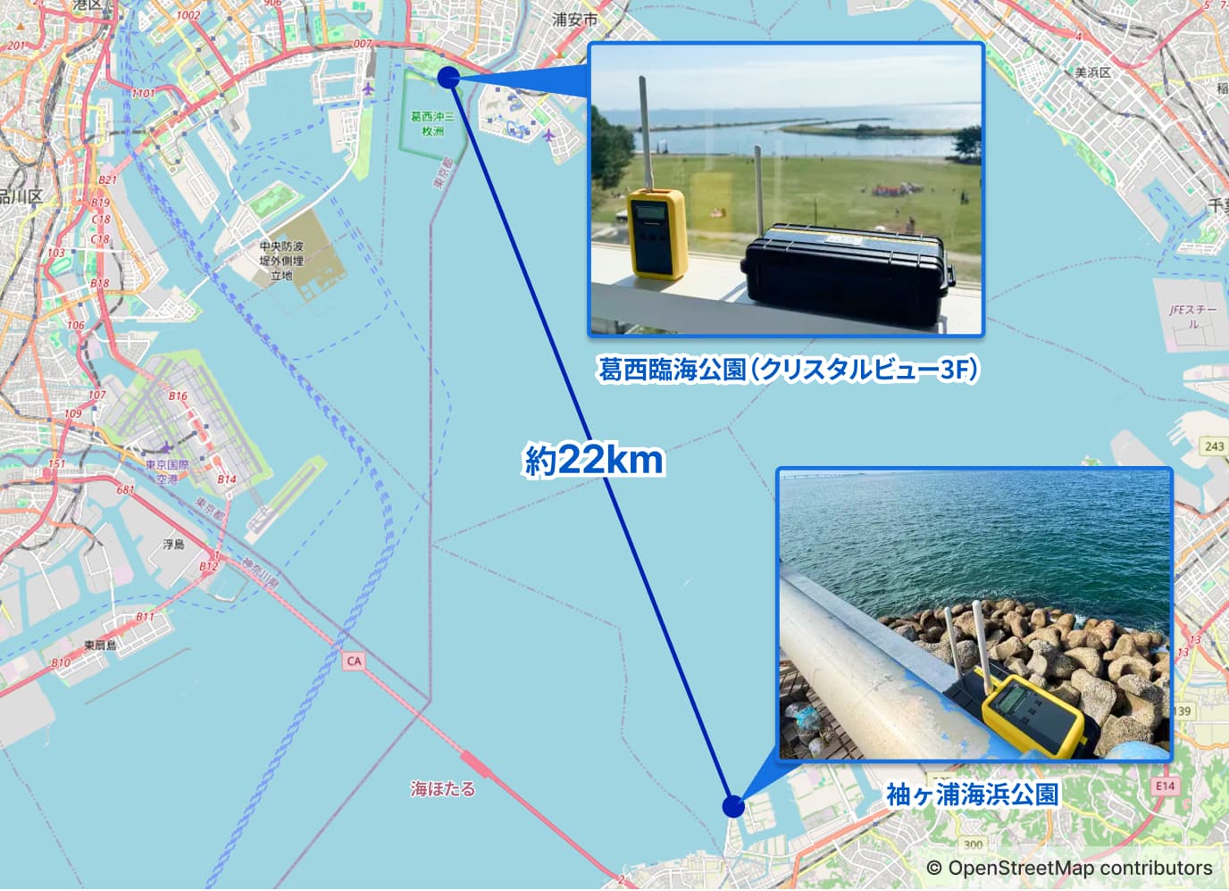 | 計測箇所 | 3拠点間で計測 | 袖ヶ浦海浜公園↔葛西臨海公園のみ計測 |
