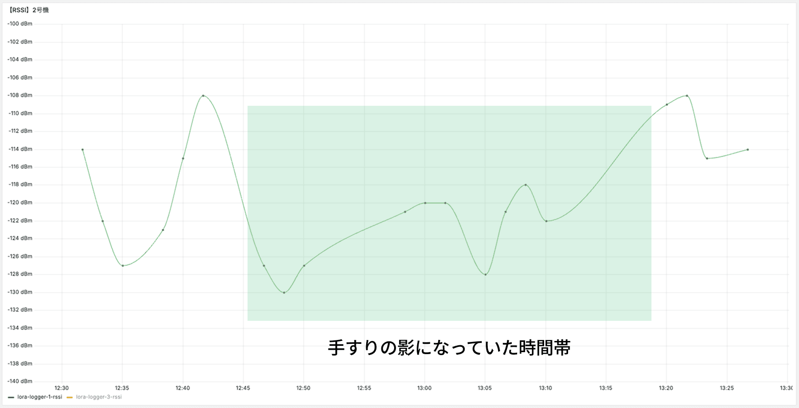 計測開始直後から通信は行えていたものの、一時的に通信が不安定な状態が続きました。