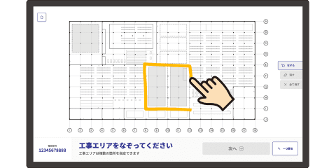 タッチパネルの指でなぞったエリアの照明を操作