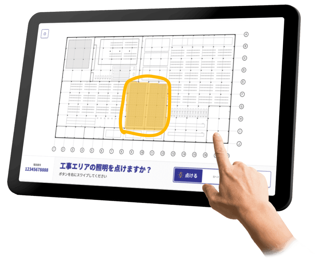 指でなぞる直感的な操作で広域施設の照明ON/OFF