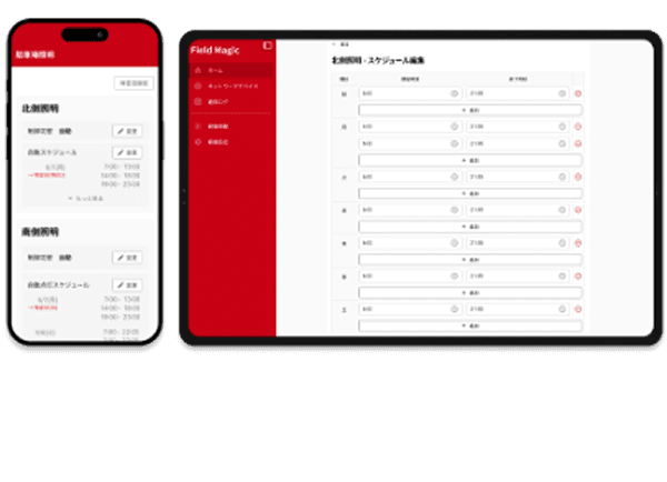 スマホ操作やスケジュール実行アプリケーションを搭載。祝日などの特定日も設定できるタイムスイッチ機能は、点在設備の自動運転を実現します。