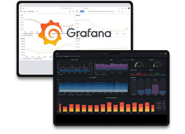 オープンソースのデータ可視化ツール「Grafana」を標準搭載。Webブラウザですぐに利用でき、外部PCの用意が不要です。