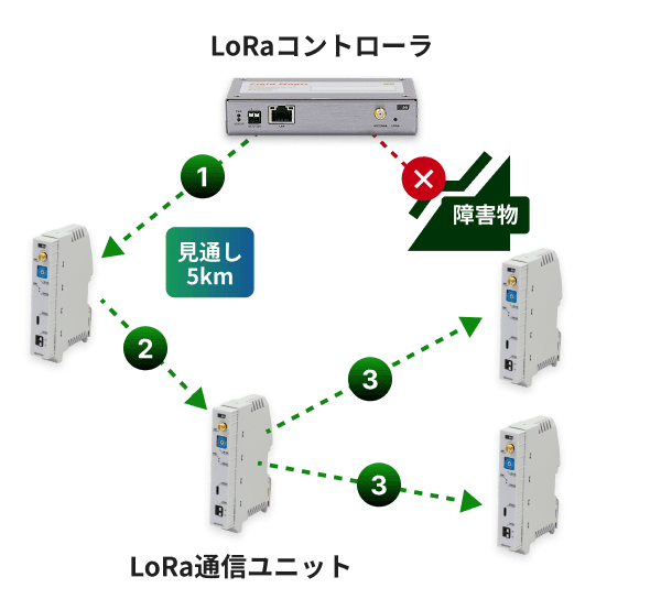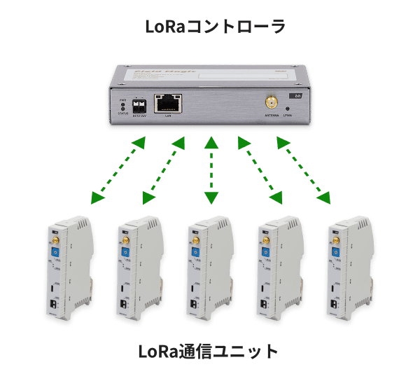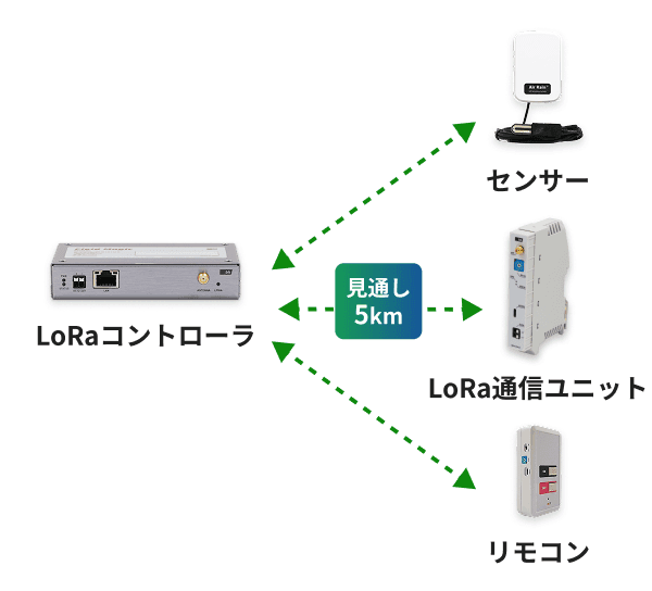 ※ 実際に通信できる距離および台数については環境や通信頻度に依存します。通信は暗号化されており、改ざんや傍受から保護されています。