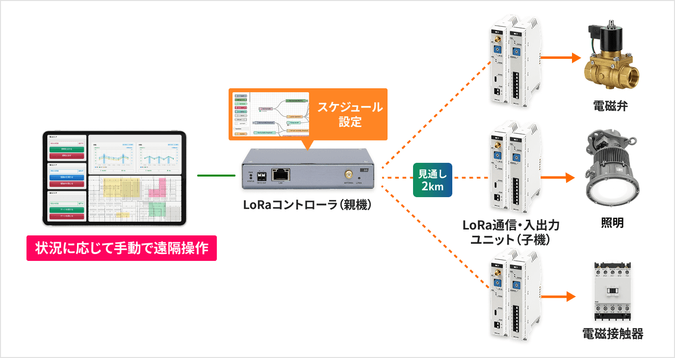 - 通常はFieldMagicのスケジュール機能で自動制御を行い、中央で一元管理。必要に応じて、臨時停止や延長といった指示を遠隔からすることも可能。